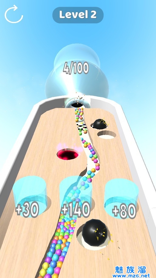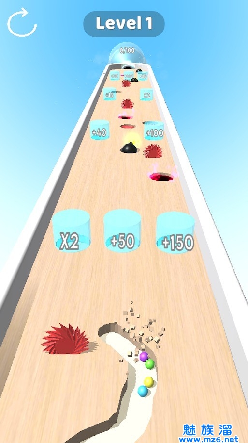 滑动屏幕就能为小球开通一条道路,将它们引到不同的倍增柱,让自己的小球成倍增加吧。