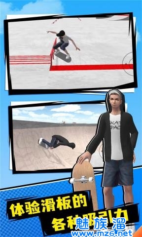 2、简单的游戏操作,就能够完成个各种高难度的滑板特技,感受滑板的魅力;