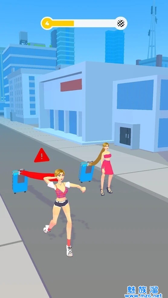 长发拉车赛是一款玩起来非常有意思的休闲益智类手机游戏,游戏中玩家可以控制角色进行闯关挑战,你需要使用头发来拉动后方的购物车、行李箱等物体前进,并且要确保头发的拉力的平衡,以免头发断裂,只有这样才能够顺利到达终点,通关游戏,喜欢的玩家快来下载长发拉车赛吧!