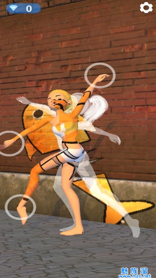 1、操控可爱的女神完成一些不同的动作和背景中的图案融为一体吧。