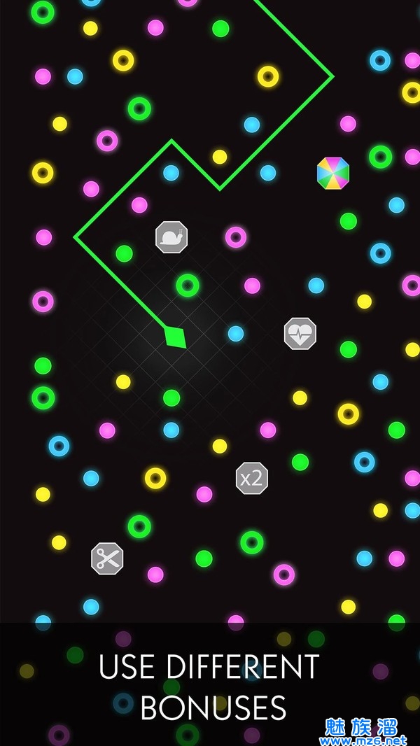 1、玩起来很有挑战性的赛车竞技游戏,通过收集光点来增加蛇蛇的长度。