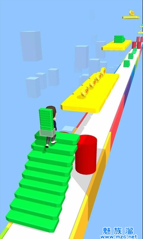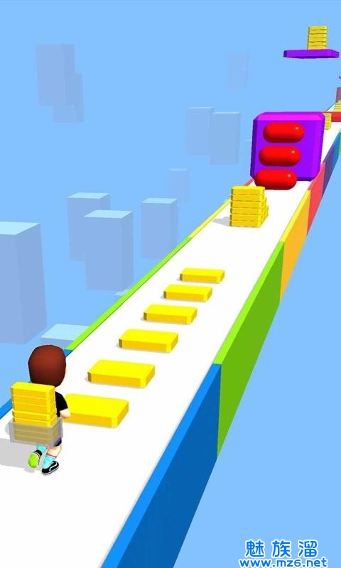2.只能收集一种颜色的砖块,玩家注意躲避其他颜色的砖块,学习各种不同的搭建技巧完成不同挑战。