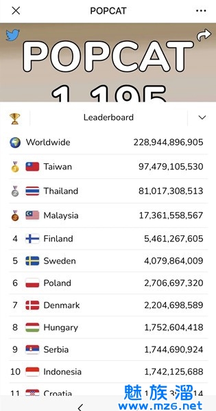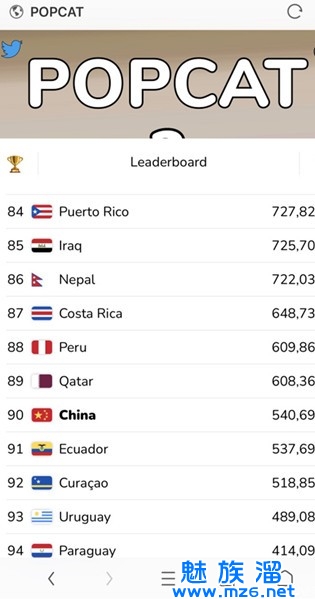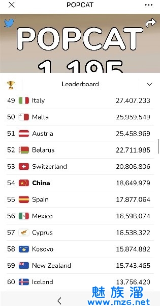 【popcatclick】这款游戏的玩法十分简单,玩家要做的就是不断的点击,你每次点击popcat都会为你所在的地区国家增加点击的哦,点击越多排名就会越往前哦,根本没有什么复杂的操作哦,而且非常适合玩家在空闲的时候玩一玩,听着点击的声音还非常的解压哦,还能让你提供你国家的排名,一举两得。