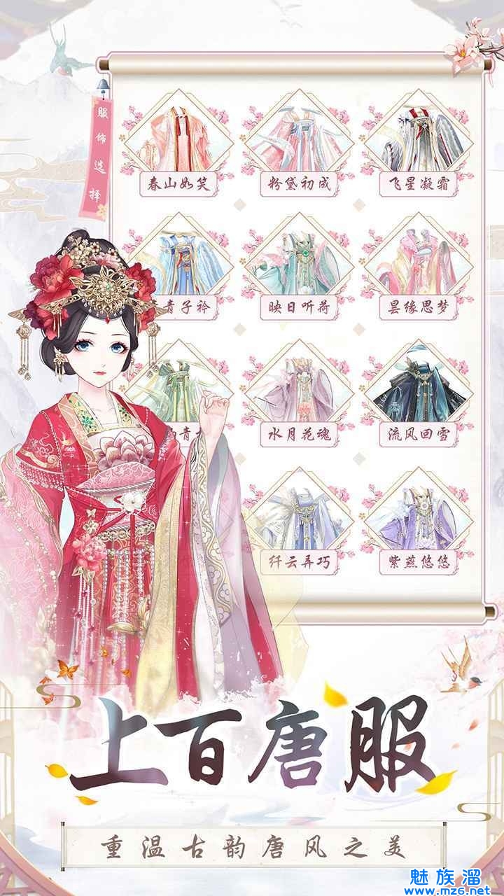 5、百套古韵唐服,绫罗绸缎,清新、华丽、优雅、甜美,多种风格标签,搭配个性唐风。精致妆容,千人千面,体验大唐魅力。