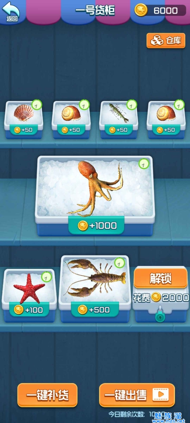 3、玩家需要将海货合理的摆放在背包中才算完成关卡,海货可以在鱼市中贩卖获得金币,至于其他用途,等着你来探索。