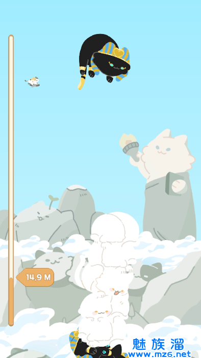 2、如果你的技能足够好,甚至可以无限叠加,你叠的猫越多,你能得到的游戏分数就越高;