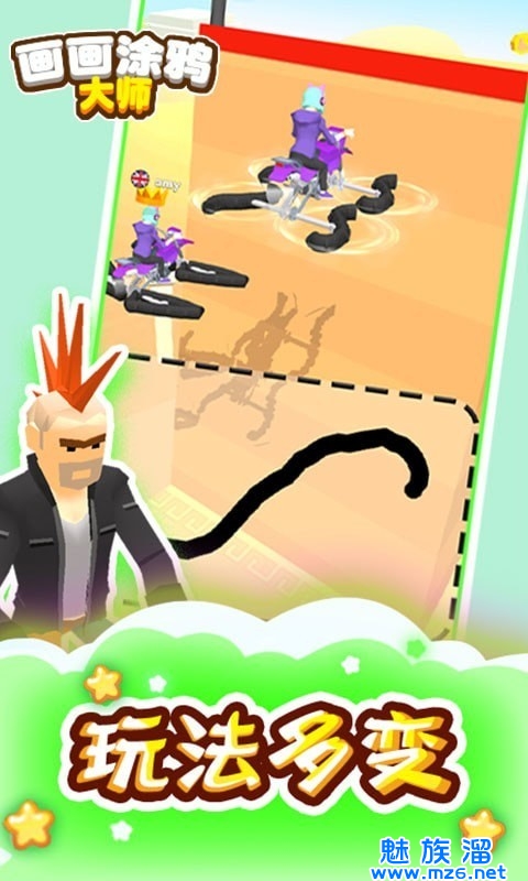 1、画画涂鸦大师上手简单,简单的手指画画,对你的绘画技术没有要求,画出的图形自动变为新的车轮。