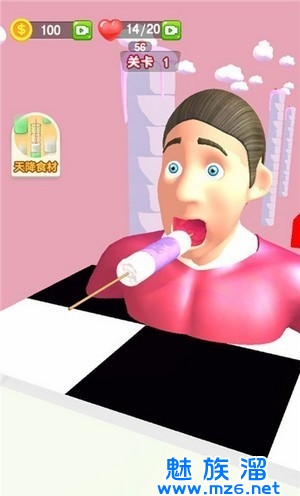 开心串串串棉花糖游戏中玩家需要控制竹签尽可能多的收集沿途的串串,将食物送到张开大嘴饥饿的路人嘴里就算完成任务。