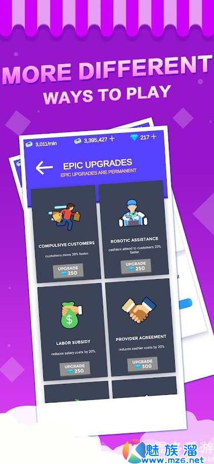 3、升级你的超市设备,商品、收银员、推销员、停车场等等,都可以升级来赚取更多的收入。