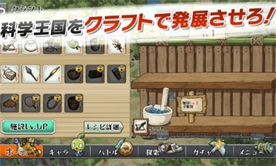 3、科学王国根据游戏的进展将渐渐壮大,使用游戏中获得的道具、素材提升科学王国中设施的等级。