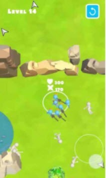 1、需要做的是收集更多白色小人当自己的战友,为自己带来更强大的战斗力;