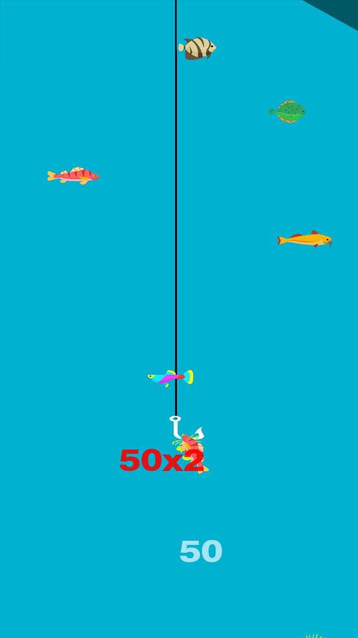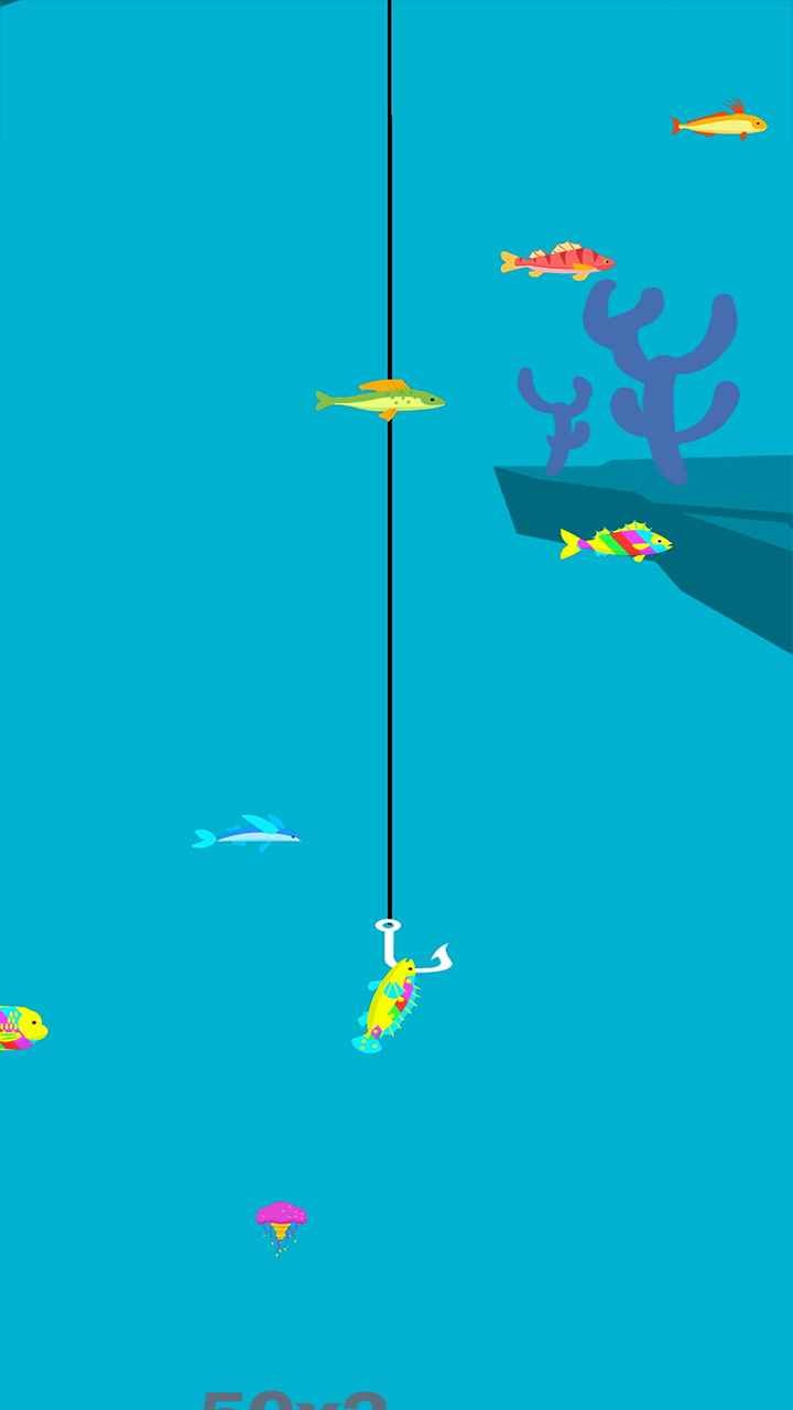 2、玩家需要控制在海面上进行钓鱼,左右滑动鱼线,钓的鱼越多奖励就越高;