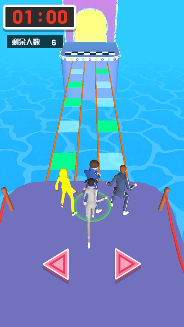 2、你将与其他玩家一同挑战木头人关卡,规则非常简单,你要在规定时间内穿过前方的终点;