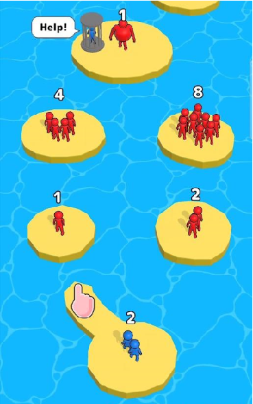2、小人上面的数字就是人数,人数越多战斗力就会越强,人数越少,战斗力越小。