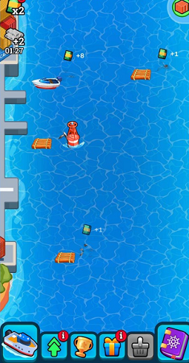1、摇杆操控小船移动,在船头是垂钓的小人,在众多钓鱼高手中脱颖而出。