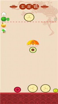 3、两个西瓜最后是不能进行融合的,当堆满水果到达零界点挑战结束,进行分数结算参与排行。