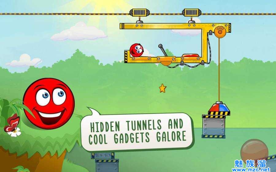 它通过触摸屏控制小红球。在充满机制的检查点中,合理利用各种物理原理破解机制规则,找到通过的途径。