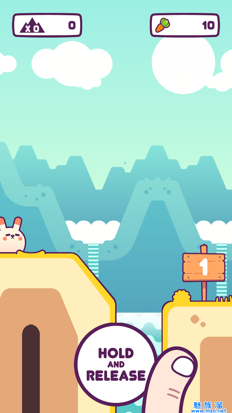 玩家需要按住屏幕来操纵兔子跳跃,跳跃的距离需要玩家控制好,