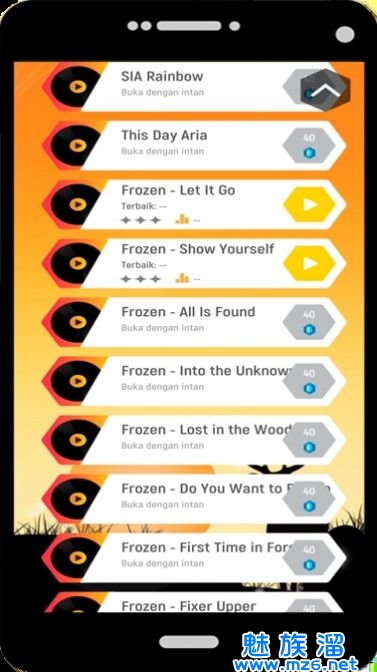 选择你最喜欢的歌曲来挑战,以后会变得越难。