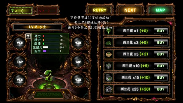 - 使用6个西兰花100%进化成功!