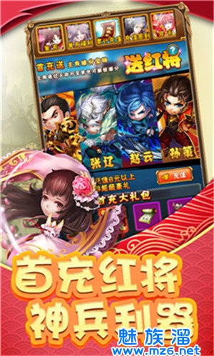 充值比例1:1000★上线送特V,元宝88888,银两千万;首充3倍;★首日七天活动,爽拿500连充,红色极品武将随便玩;★每天签到百连抽,体验减负,急速满级;★独家创新超V商城,黑铁-钻石商城,可兑换金色顶级神将;