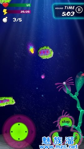 2.玩家可以操控着小怪物在海底进行玩耍,每一次的游动都将会浪费一些体力;