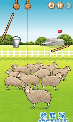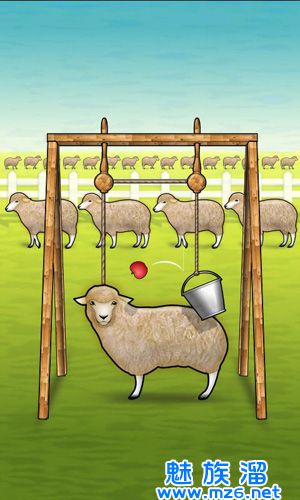 没错,这款Android游戏的名字就叫「羊感到羞耻?」,其实游戏的方式也非常有趣,我们必须在画面中画出木条,把天上掉下的苹果想办法弄到水桶中,只要重量达到就会使水桶降下,同时羊毛也会被拉起,让羊没衣服穿就害羞了。
