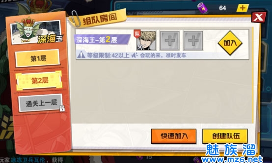 在这里需要先单人挑战过首层BOSS后即可解锁下一层的组队模式,通过合适的队伍角色搭配以及默契的配合,就能轻松打败更高层的BOSS。