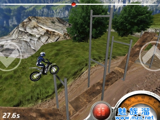 加速摩托车,以便分数提高并观察指示灯,车辆还可以向左或向右转弯。