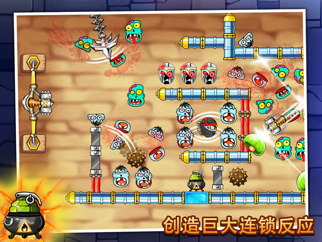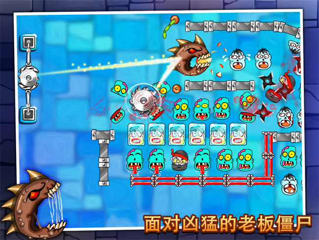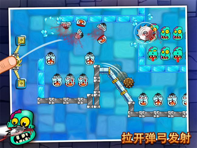 当锯子一次切碎多个僵尸时,您还可以体验美妙的音效和视觉。僵尸大屠杀是一款极富乐意的打斗游戏,可以令您兴奋娱乐数小时。游戏非常简单,只需拉开弹弓对准僵尸发射。