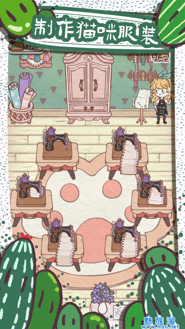 制作猫咪服装并出售,赚取小鱼干升级店铺,经营属于你的猫舍~