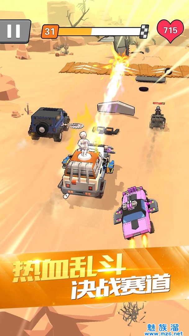 他不同于其他赛车光靠驾驶和速度进行比拼,这款游戏的主要特色还是在于战斗赛车的武力对抗,