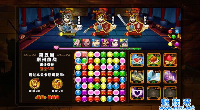 《宝石三国》是以三国为背景的益智养成角色扮演类游戏。拥有简单刺激的战斗玩法,多变的武将组队系统,强大的武将养成系统,特色的排行榜系统。华丽的技能,爽快的战斗,磅礴的背景音乐更是将你置身于那段战火纷飞、群雄割据的年代,体会到睥睨天下、一骑当千的快感...