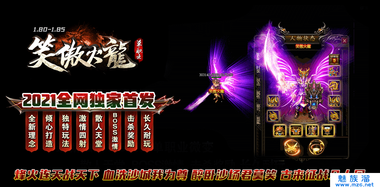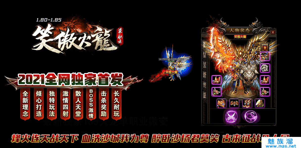 笑傲火龙传奇是一款经典的三职业火龙传奇玩法,玩家可以在游戏中选择自己喜欢的职业进行冒险挑战,游戏已经为大家准备好了大量的游戏专属福利,玩家只要上线就能领取丰厚的游戏奖励,超高的游戏爆率让你不用充钱也能畅玩,感兴趣的玩家快来下载试试吧!