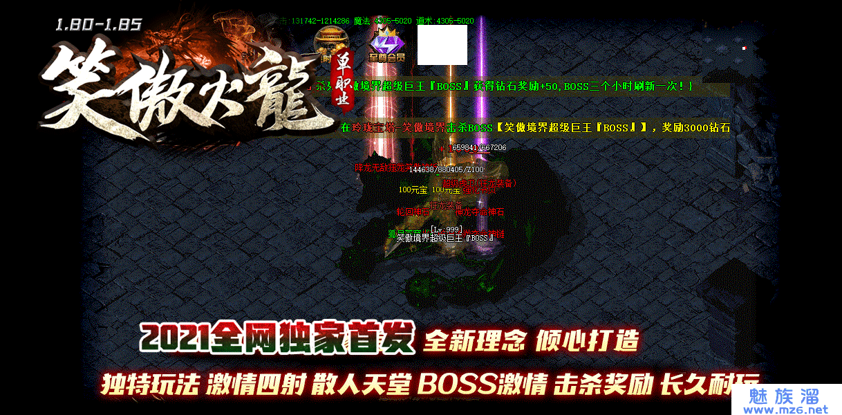 宏大的传奇世界观,浩瀚的地图,炫酷自由的pk玩法,红名爆装!