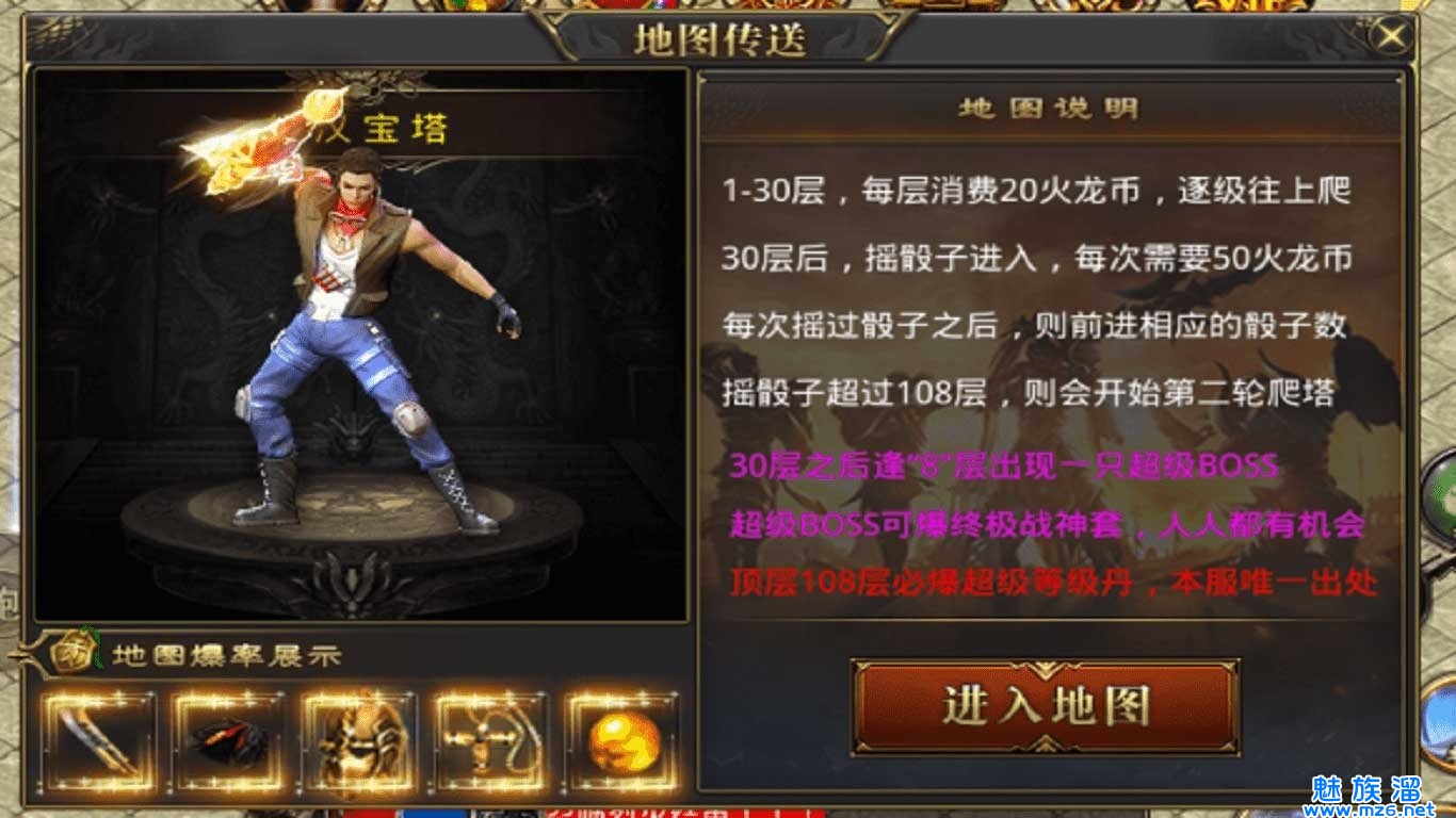 奖励获得:每挑战胜利一层,奖励累加,玩家离开副本时发送奖励。如果玩家的背包储存不足,系统通过邮件方式发送奖励。