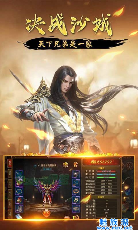 组队兄弟争霸沙城,随时开局,同台跨服竞技PK,全服传奇人物排行榜展示。