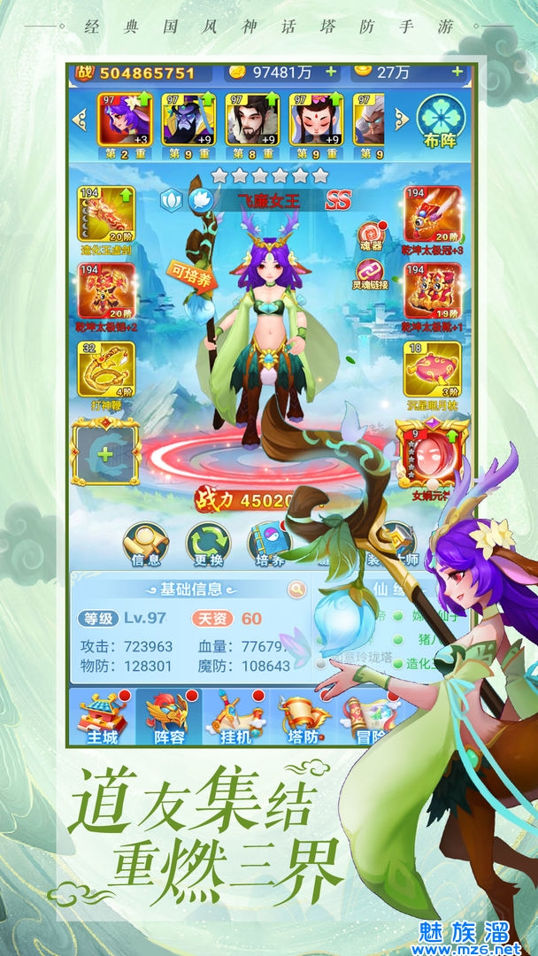 魔灵军团是款塔防游戏,采用中国神话中的人物角色,拥有超多有趣玩法,多种养成模式,并且通过卡牌来收集角色组成不同阵容,还有装备进行加持,大幅提高游戏乐趣。