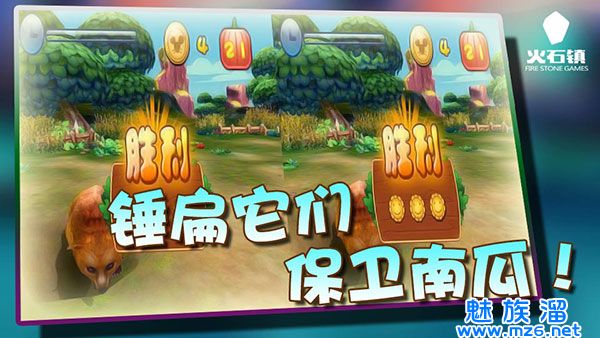 《南瓜大作战》我们的森林农场到了收获的季节,辛苦种的南瓜被一帮贪吃的老鼠和狗熊发现了,尽快瞄准它们,挥动手中的木锤,锤扁这些坏家伙吧,保卫南瓜,加油!