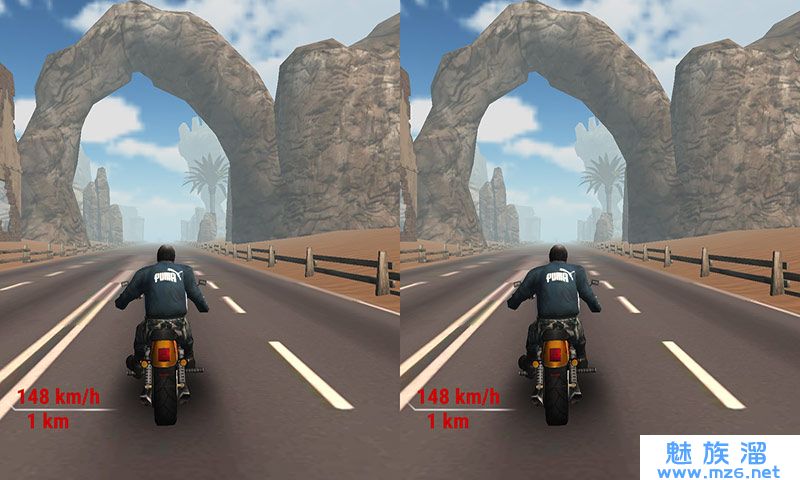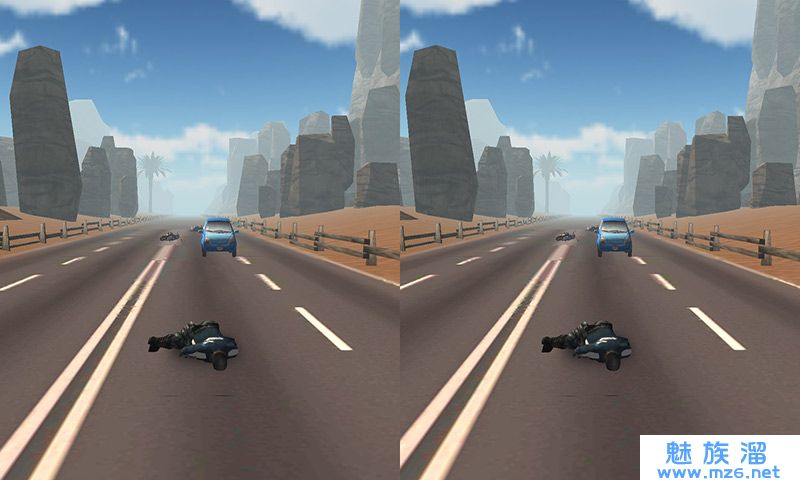《公路特技车手 Highway Stunt Bike Riders VR》旷野公路夕阳,哈雷纹身胖子,撞车后,肥肉在风中飘扬。