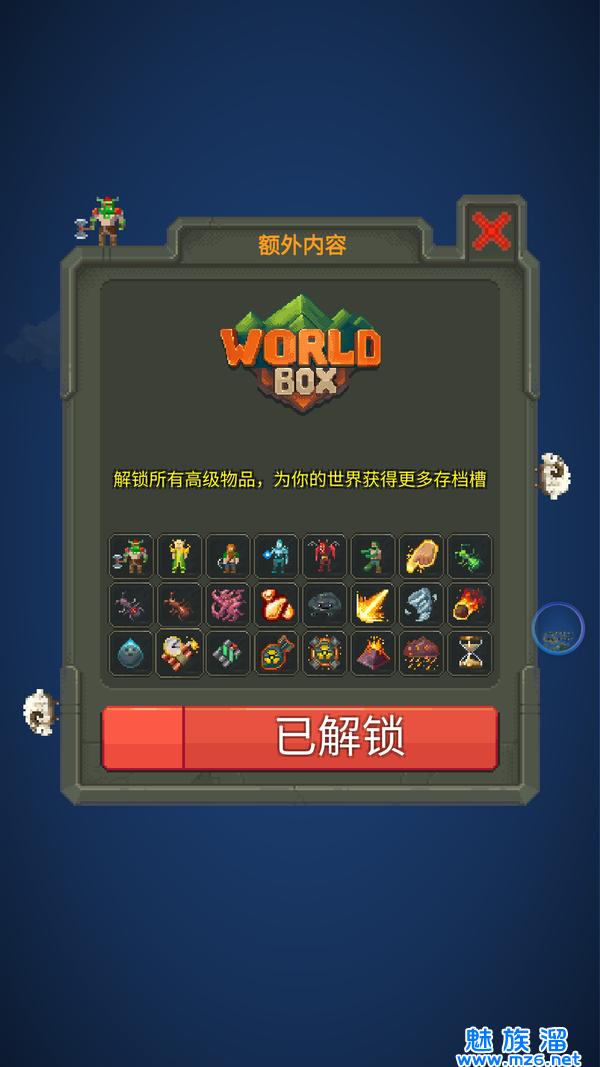 世界盒子最新版破解版是世界盒子最新版本的破解版,该版本已经为大家带来了内置作弊器的破解内容,超多好玩的游戏内容不容错过,还能在游戏中养成各种强大的龙族和修仙者,无线资源更是让玩家欲罢不能,所有内容一键修改,感兴趣的玩家快来下载试试吧!