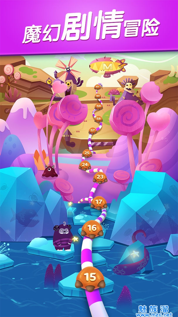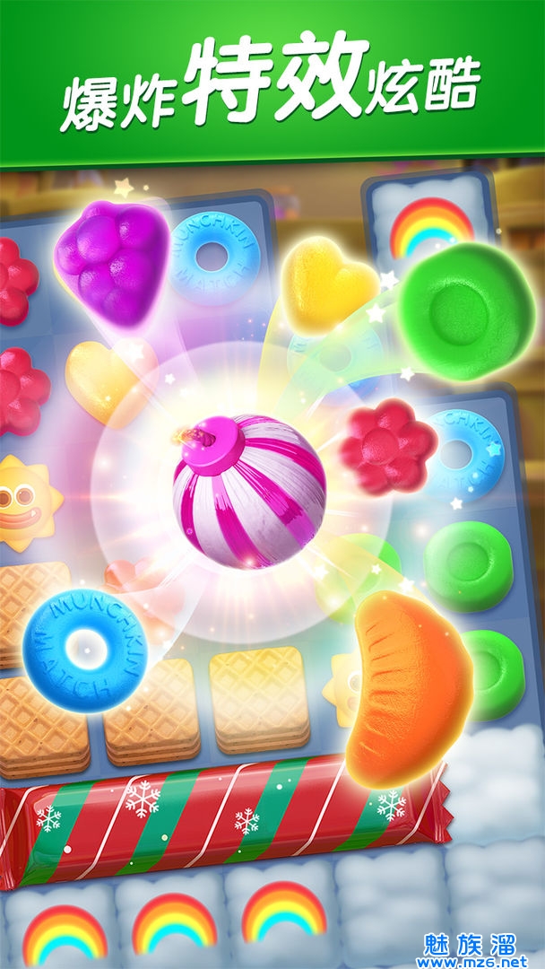2. 独创的怪兽辅助玩法,消除糖果来为怪兽充能;