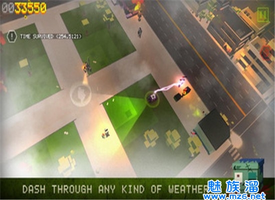 玩家在游戏中要驾驶一辆小车在城市中一边猎杀僵尸一边拯救人类