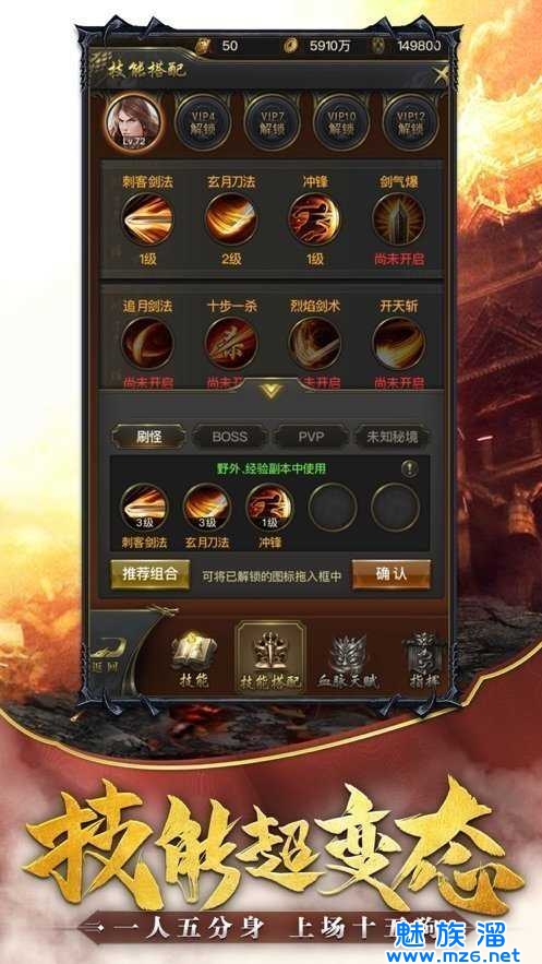 新增游戏合击战技,支持多位英雄技能组合释放,提高玩家打怪升级的战斗效率。
