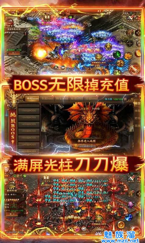 2、震撼视觉的战斗场景,极速的角色升级体验,海量BOSS不间断刷新;