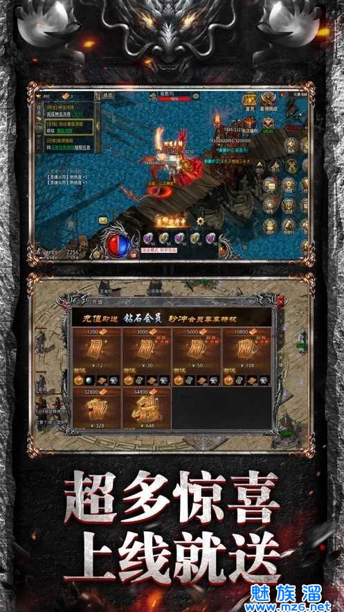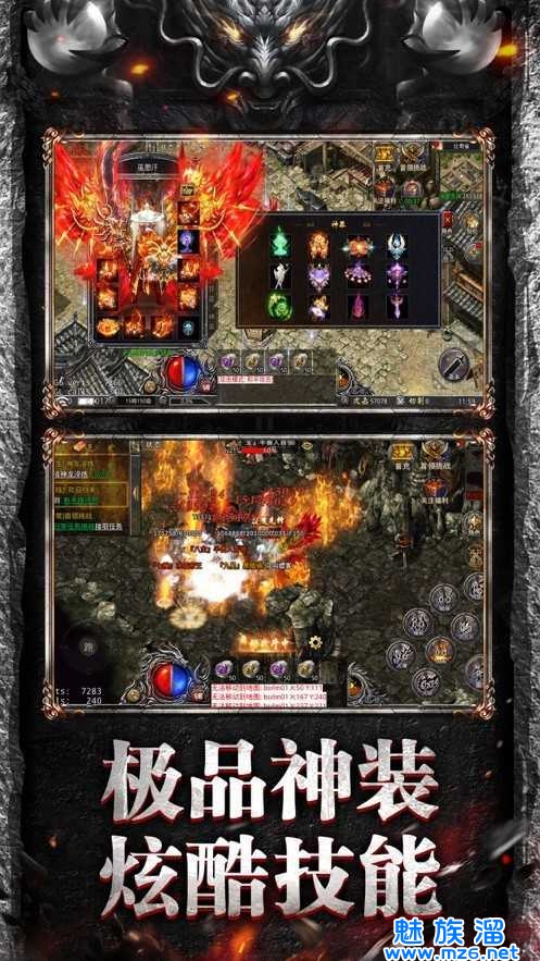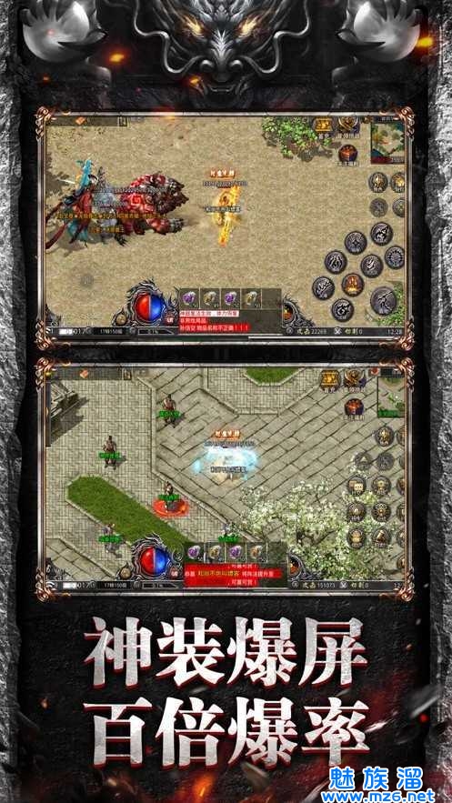 3、复古写实的游戏画风,经典的传奇游戏玩法,带你重回记忆中的热血岁月;