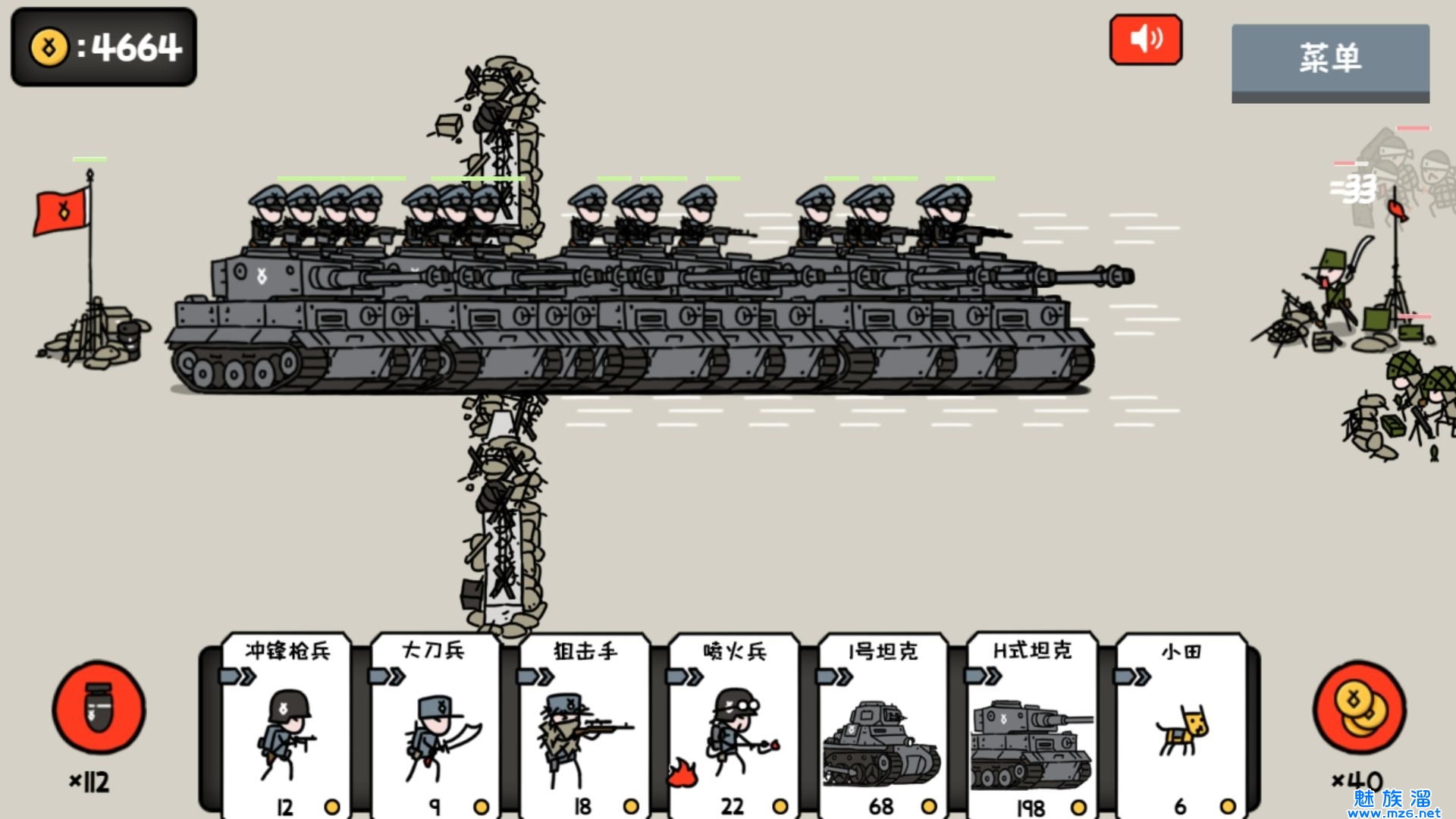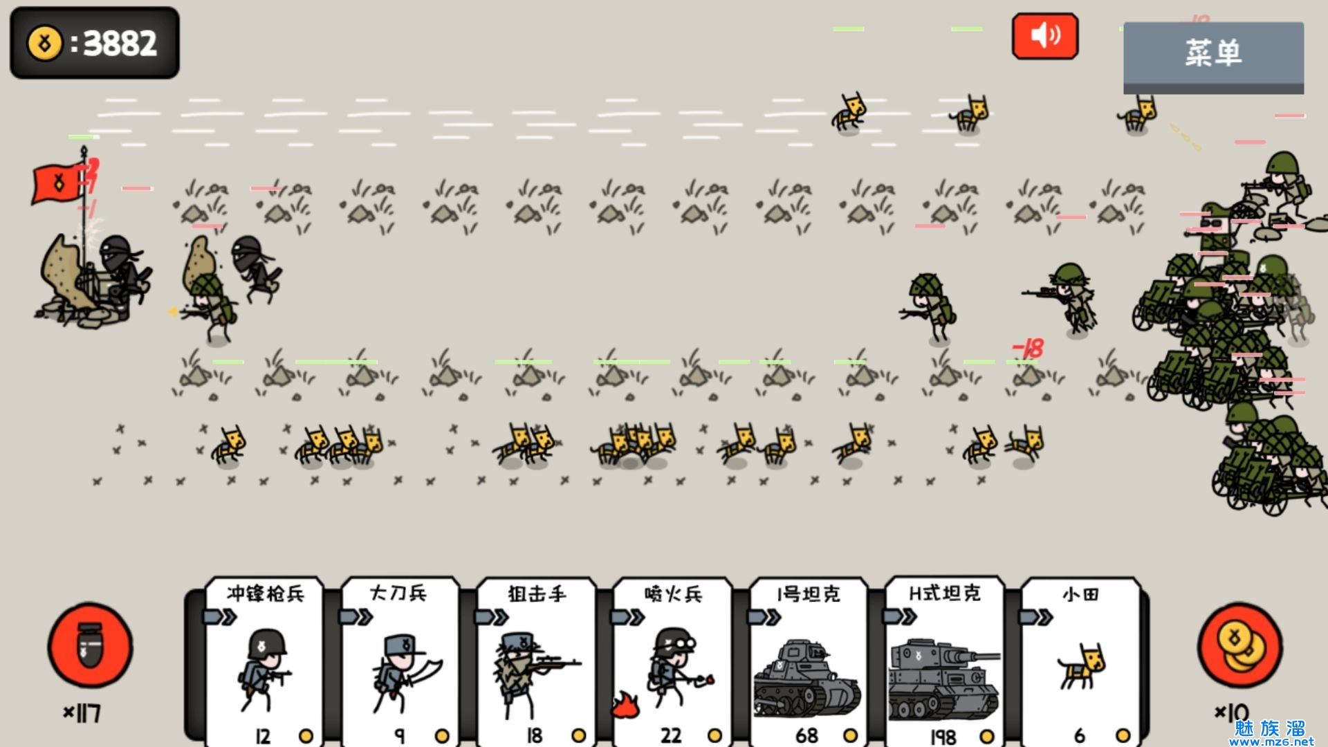 小士兵战争是一款简单有趣的战争闯关类游戏,在这款游戏中你将能够玩到非常好玩的战争策略的游戏玩法,