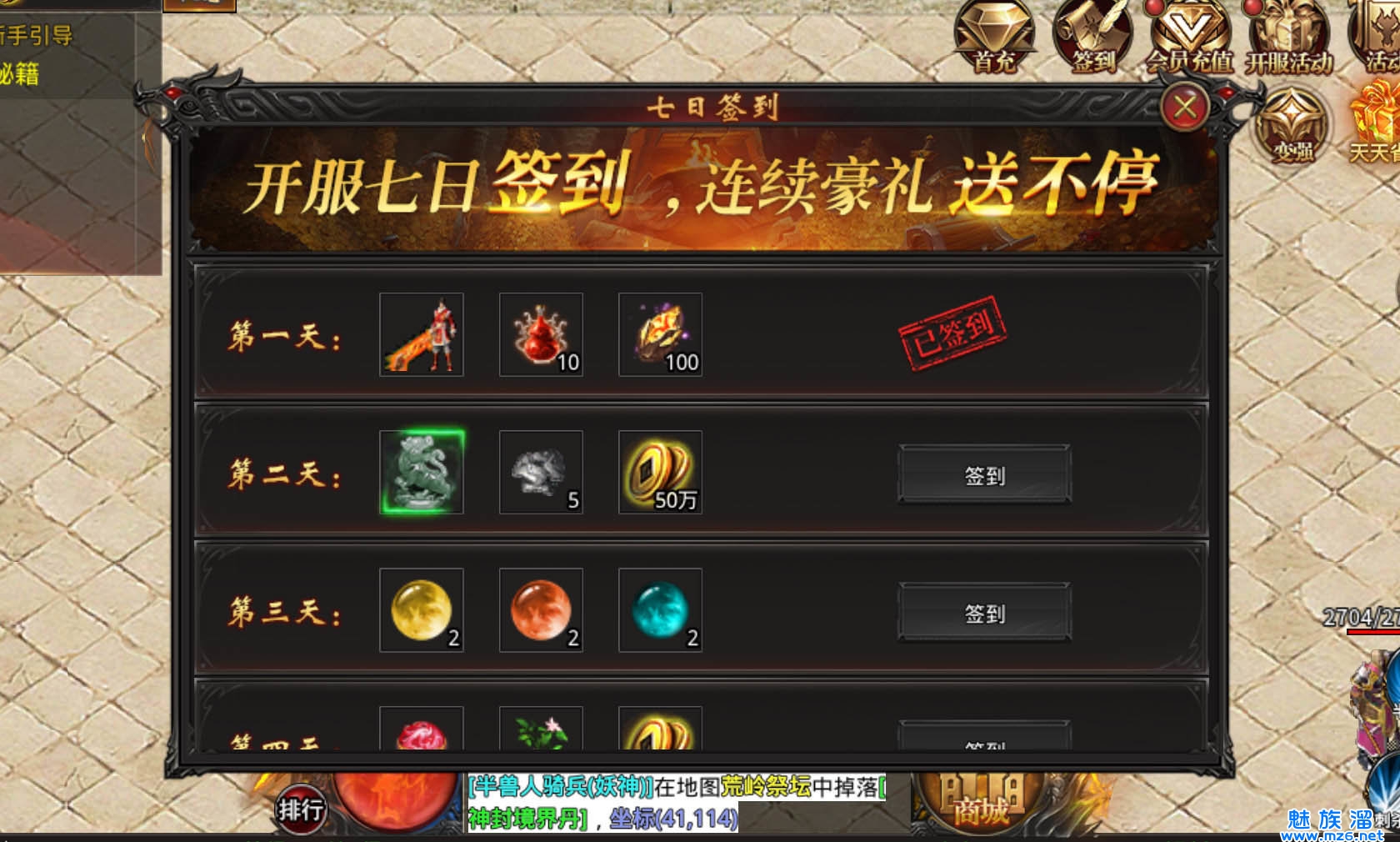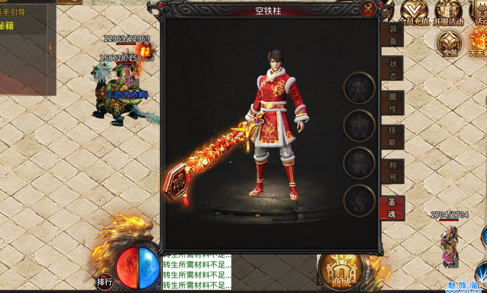 有实力的玩家可在游戏中购买首冲,获得强力幻武,从此升级不再是困难