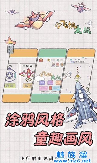 小飞机大战是一款驾驶着飞机进行射击对战的手机游戏,这款游戏的画风采用了非常可爱的涂鸦画风,玩家可以在游戏中通过控制各种飞机来攻击敌人,每当我们攻击到一定数量的敌人之后便可以升级,升级可以提升各种属性或者获得全新的能力,游戏中有着单人模式和组队模式两种玩法,还有天梯排行,非常完整,感兴趣的小伙伴快来下载吧!