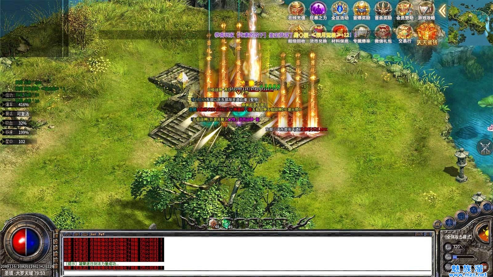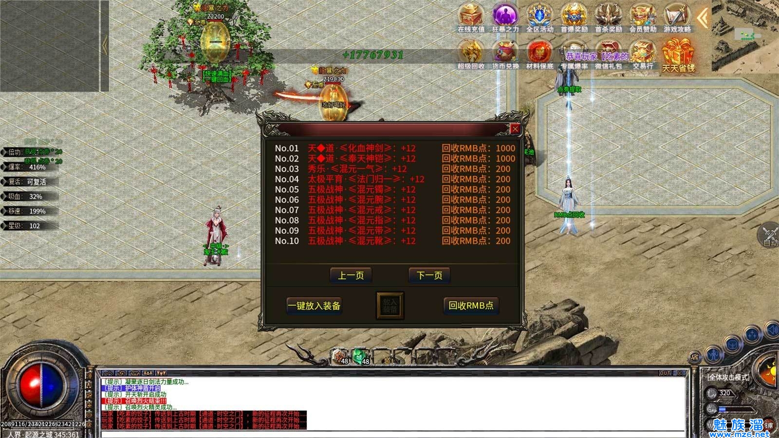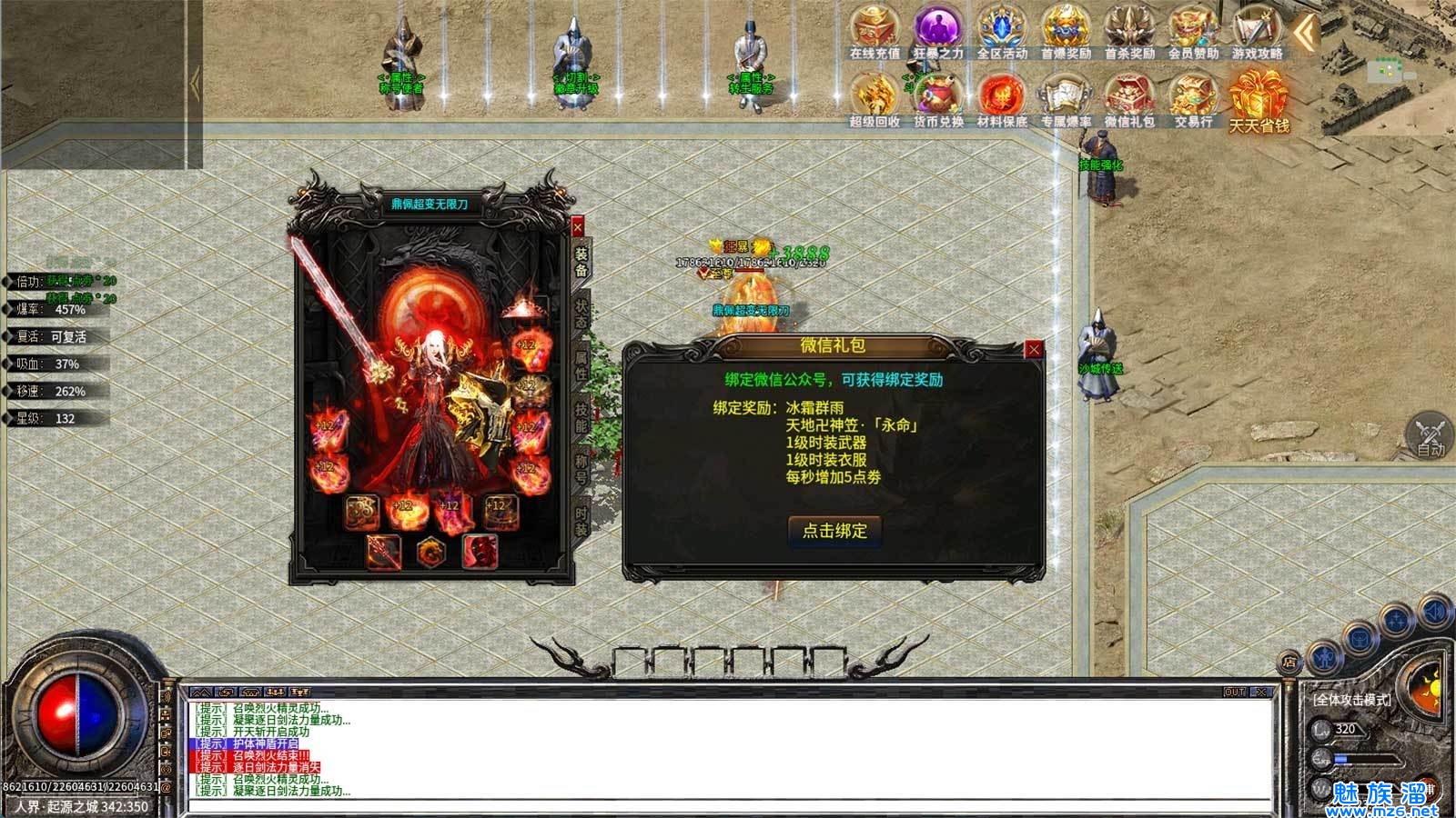 3、一刀秒杀全部boss,同屏斗争烽火不断,无红名对战畅爽无限;